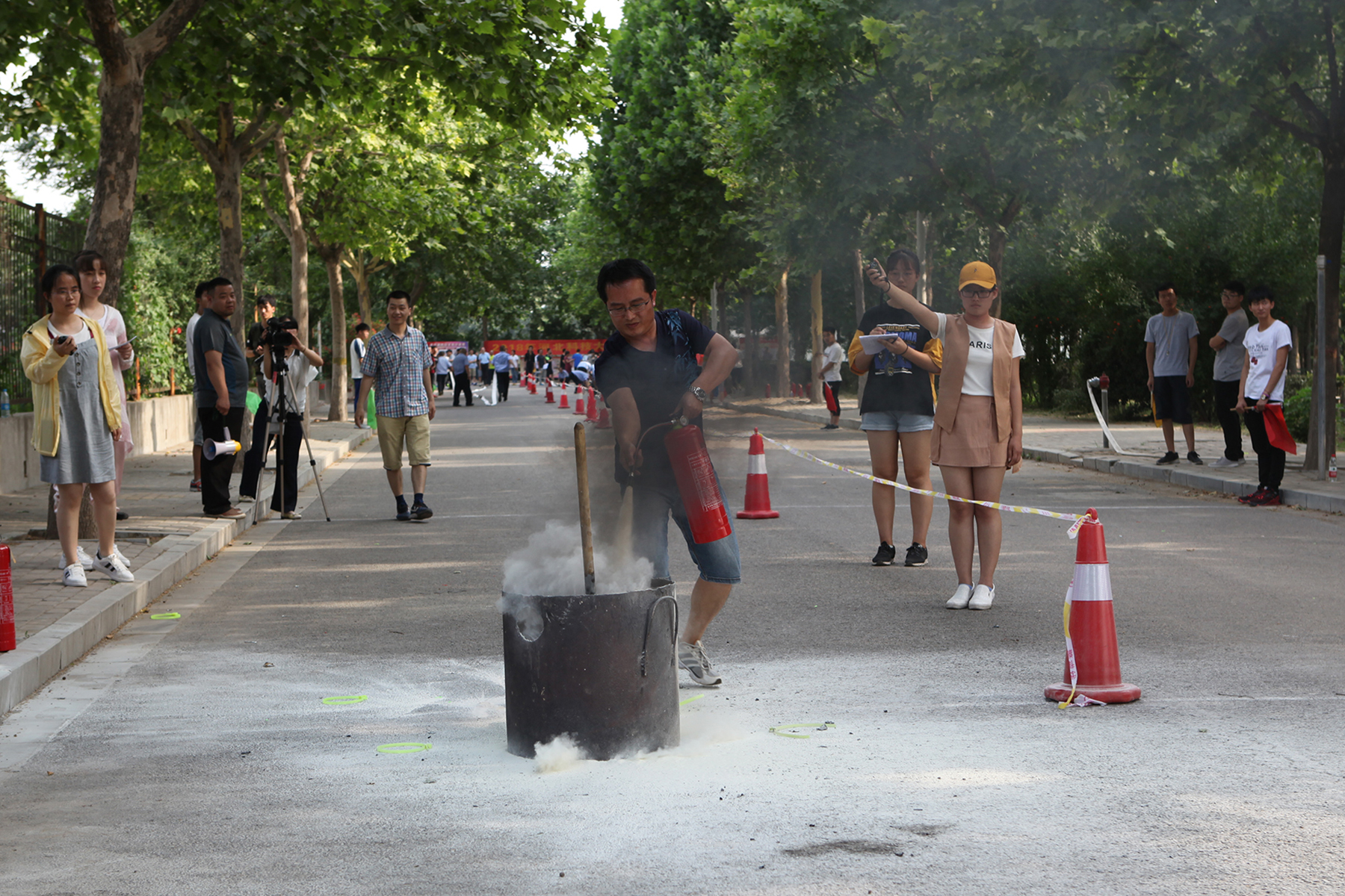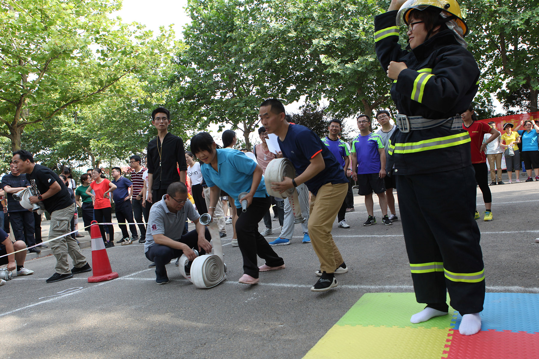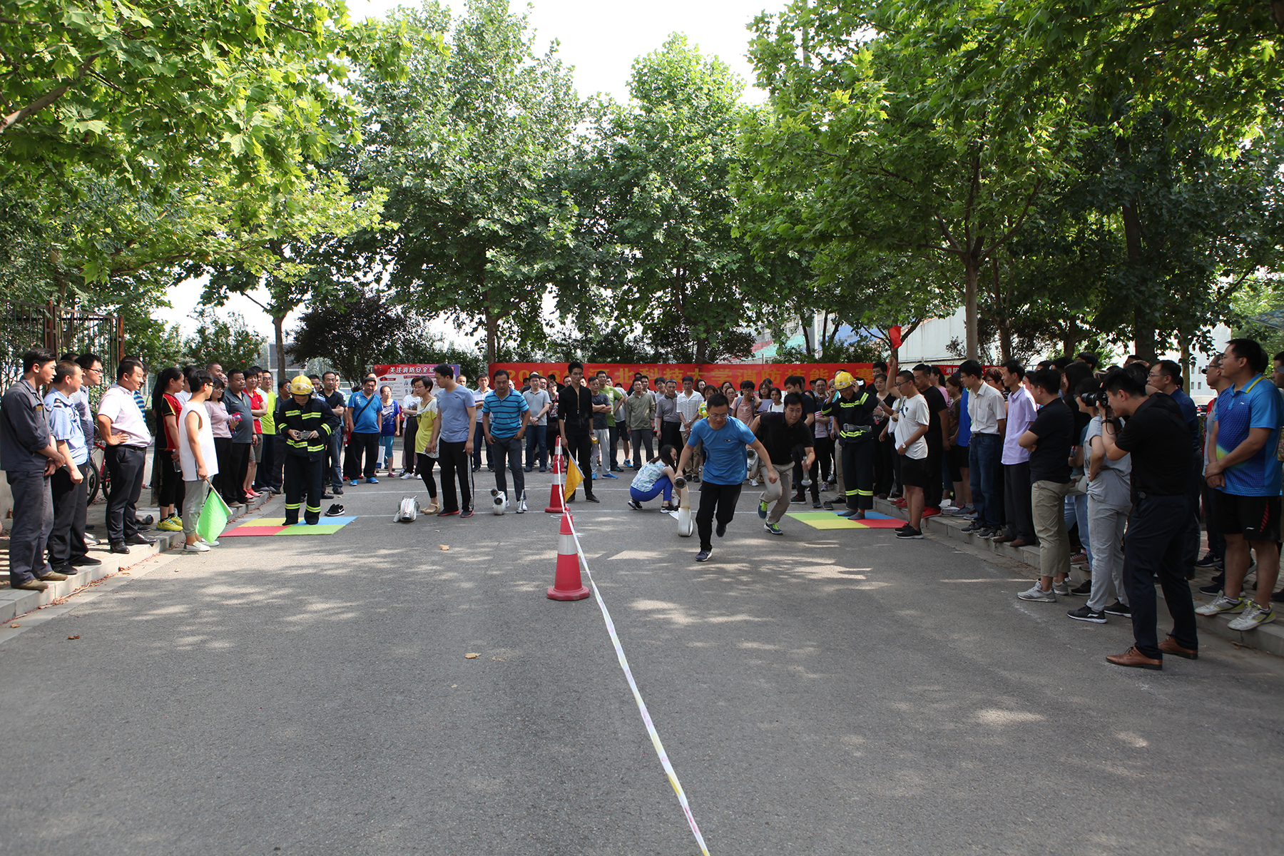 活动开始前,首先进行了消防技能讲解和操作示范。正式项目为消防员战斗服穿戴、消防水带连接、灭火器灭火三个项目的接力赛,共有来自25个分会的200名教职工参赛。比赛现场紧张有序,参赛教职工通过实际操作消防设施,学到了实用的消防技能,提高了抗御火灾的能力,为进一步保障校园消防安全起到了积极的作用。