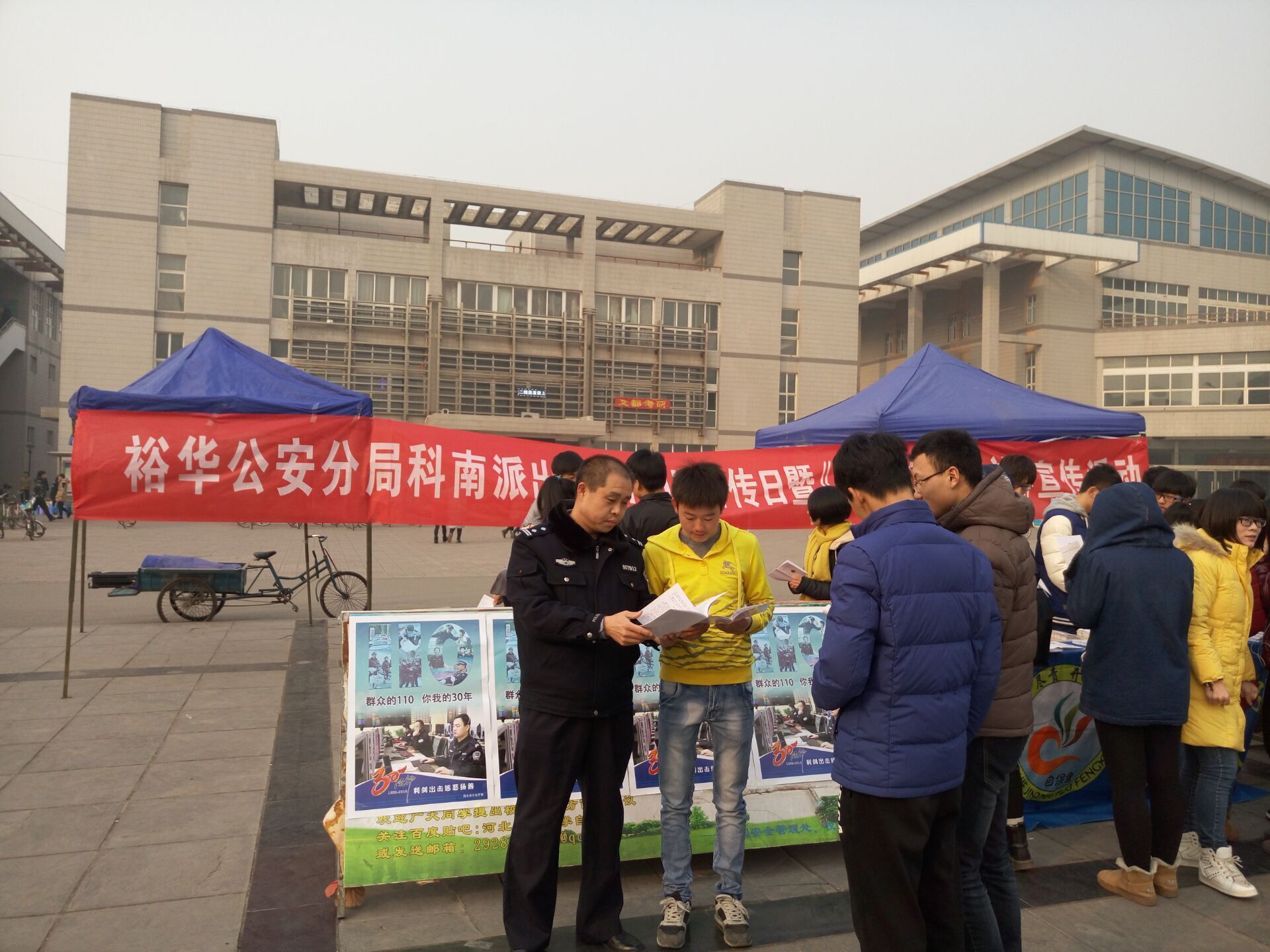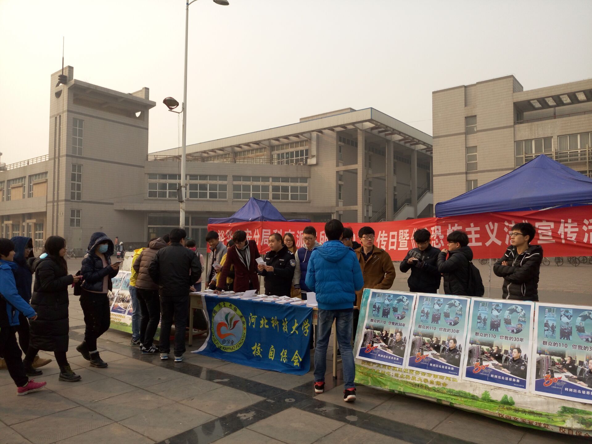 1月10日是我国“110宣传日”, 10日上午我处联合校自保会,在生活广场举办《反恐怖主义法》宣传活动。科南派出所领导和校园安全管理处相关负责人参加了此次活动。