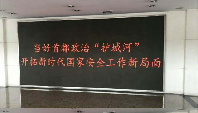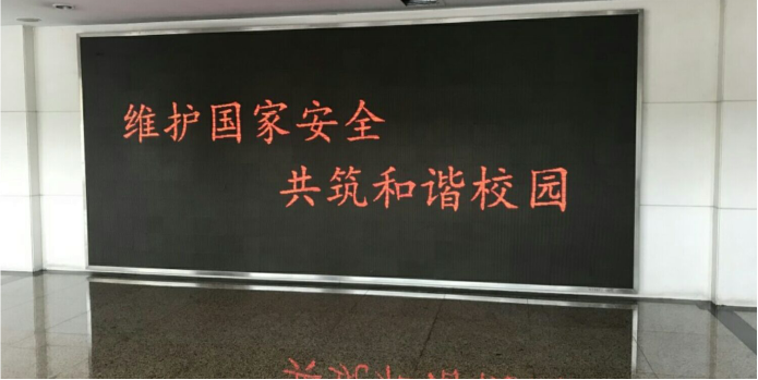 为扩大活动的影响力,促使师生把国家安全铭记于心,利用机关楼大厅LED屏,循环播放国家安全的宣传标语。