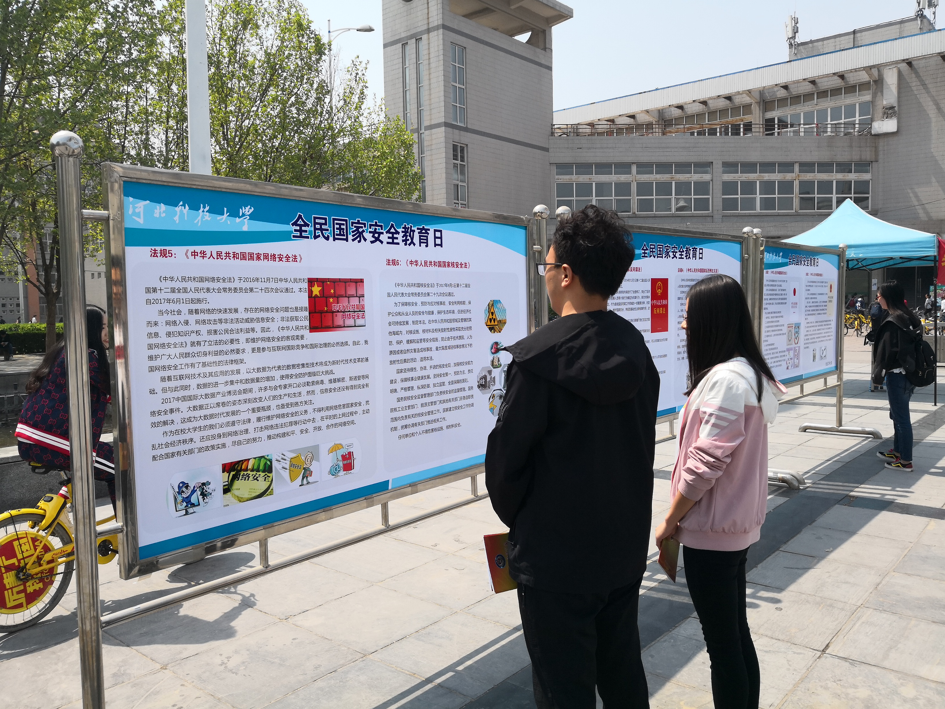 2018年4月15日是我国“全民国家安全教育日”, 为响应国家号召,落实石家庄市国家安全人民防线办公室关于开展国家安全日教育的要求。我校为进一步提高师生的国家安全意识,增进对敌情形势的认识,增强师生维护国家安全的自觉性,学校于4月14日至4月21日在全校范围开展了“全民国家安全教育周”系列教育活动。